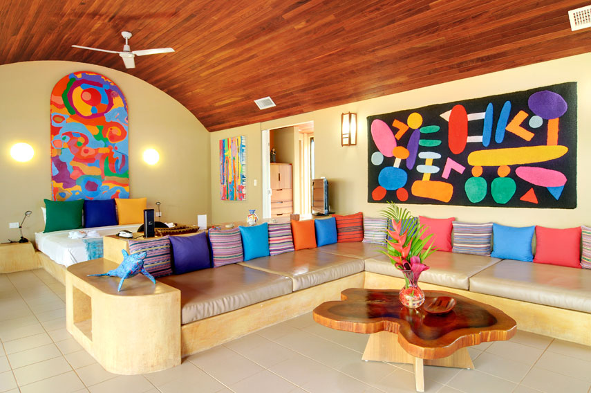 El hotel cuenta con villas frente a la playa, con terraza, jardín privado, área de estar, mini bar, aire acondicionado y abanico. Los espaciosos baños incluyen una ducha que se abre a un jardín privado. Cada villa está separada una de la otra, fueron diseñadas y decoradas con arte de Charlene Broudy.