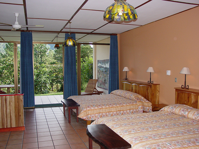 La Casona ofrece alojamiento ideal para grupos o familias y se encuentra a 500 metros del edificio principal por una pendiente moderada. Sus 5 cómodas y económicas habitaciones con una gran terraza ofrecen una impresionante vista al volcán y al lago Arenal. Cuatro habitaciones están equipadas con una cama de matrimonio y ofrecen una vista hermosa habitación volcán; La quinta habitación tiene dos camas queen-size y literas con vistas a la selva, y todas tienen cajas fuertes. Los dos grandes y confortables baños son compartidos por todos los huéspedes de La Casona.