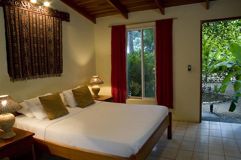 El bungalow tiene dos camas queen size en una habitación que está separado por puertas francesas. La habitación principal tiene un sofá de cuero que se puede utilizar como una tercera cama y un sillón reclinable. El baño tiene un tipo de spa con ducha abierta y con suaves piedras de río en el suelo, para masajear suavemente sus pies después de un día en la playa.