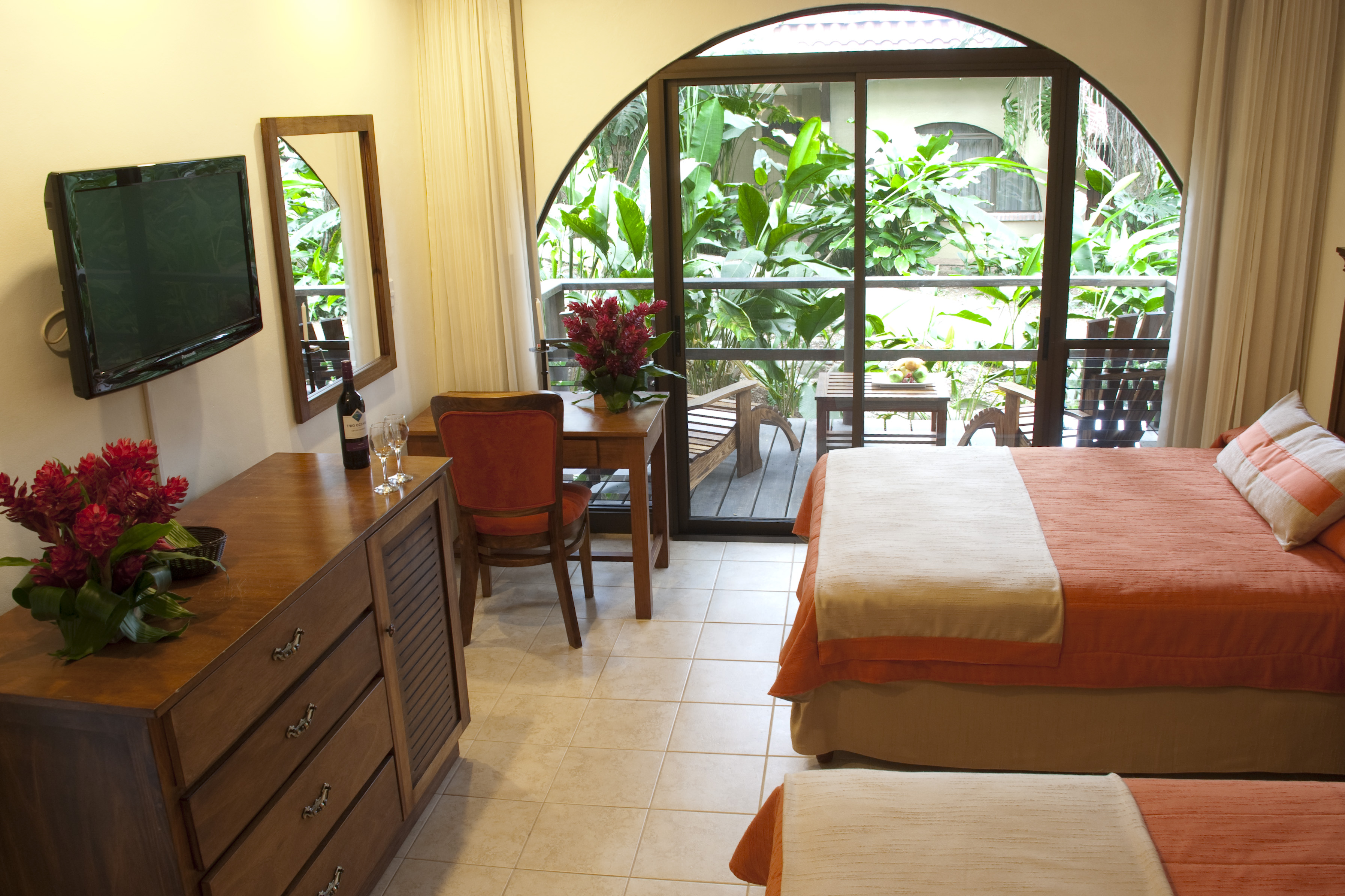 Habitaciones rodeadas de vegetación. Algunas de ellas cuentan con cama king size, otras con dos camas dobles. Recientemente renovadas, con techos altos y amplias ventanas, confortables camas, ventiladores de techo, kit de café, baño con ducha, TV por cable, teléfono, servicio de internet, secadora de cabello, caja de seguridad y aire acondicionado. Algunas cuentan con terrazas con vista al jardín.