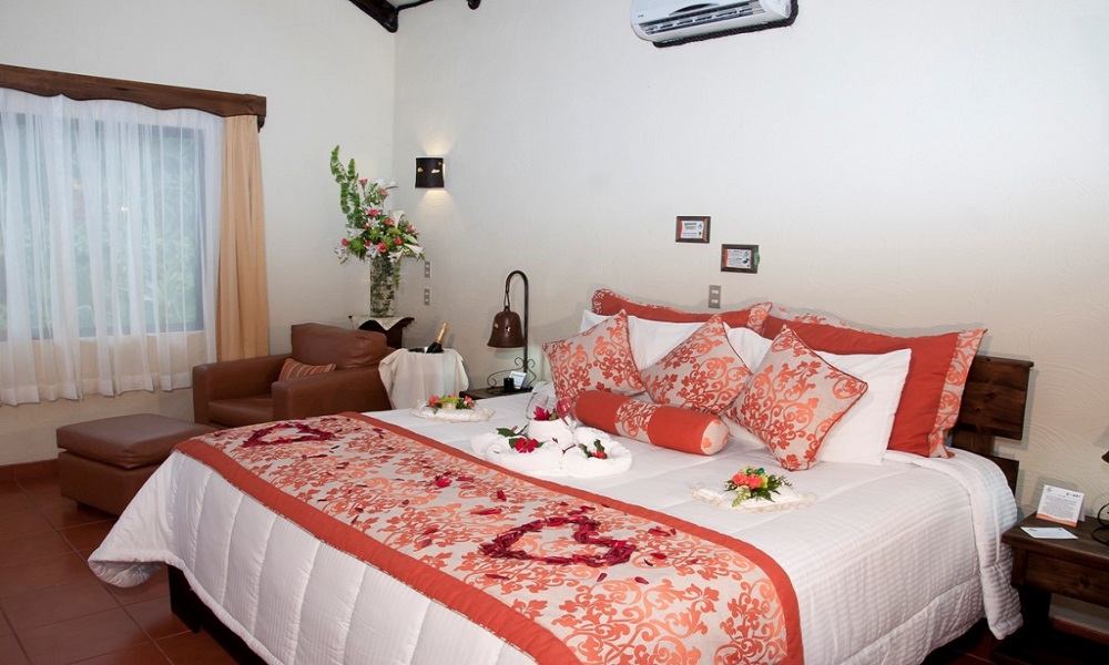 Junior Suites: They are located in great place to see the beautiful Arenal Volcano. Each room are surrounding with exotic gardens, beautiful flowers and many species of birds. These rooms offer either a king size bed or Two queen beds.