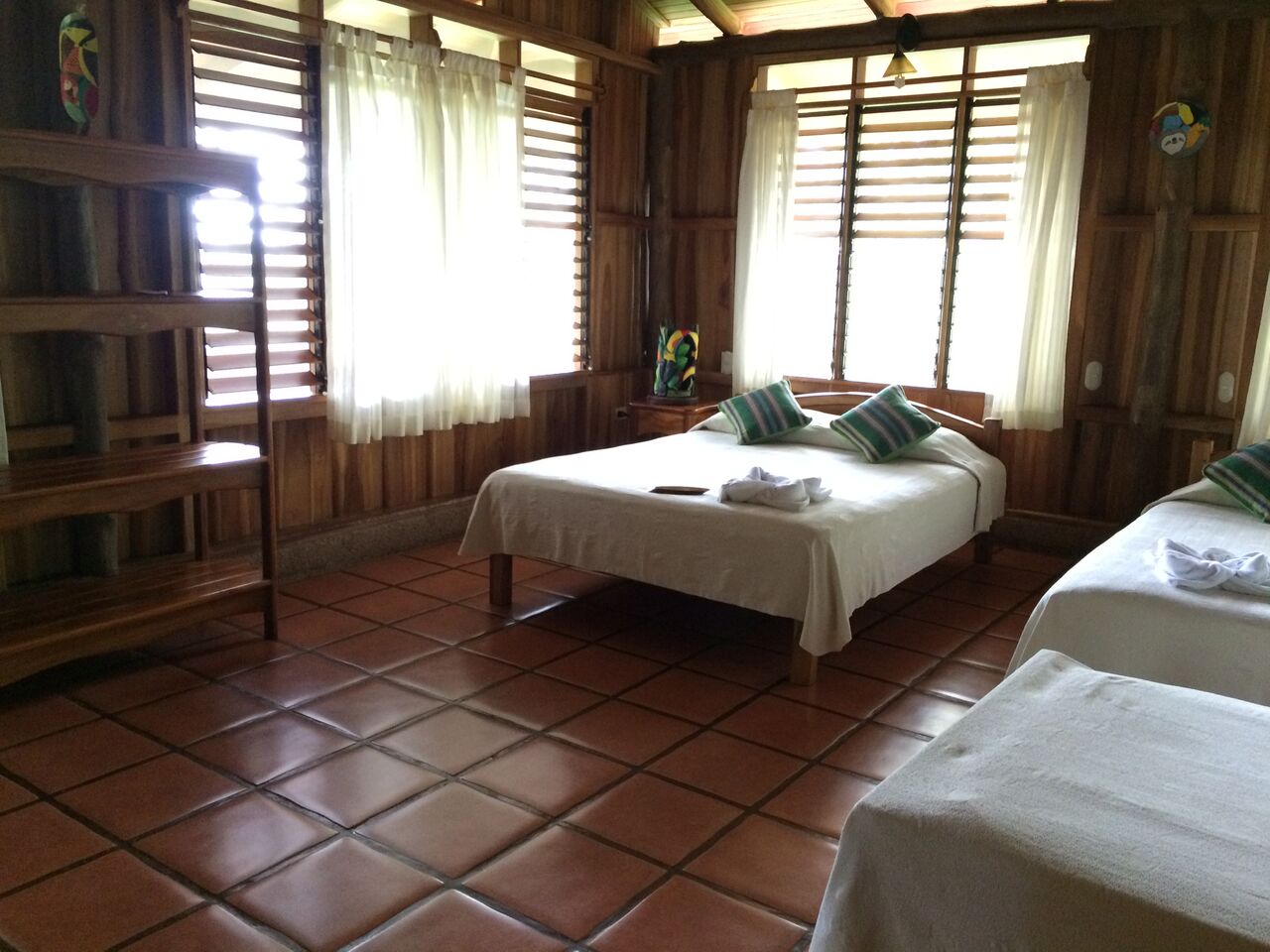 Colibri is a large room with two queen beds and a twin bed, making it great for families or groups. It is also equipped for Handicap Access. It has a balcony with a huge ocean view, where you can see Ballena Marine National Park, the Rainforest and much more. All of the rooms are made from reforested wood from the trees planted on the same farm 20 years ago. Local craftsmanship with wood, stone, shell, and sand is unique.
